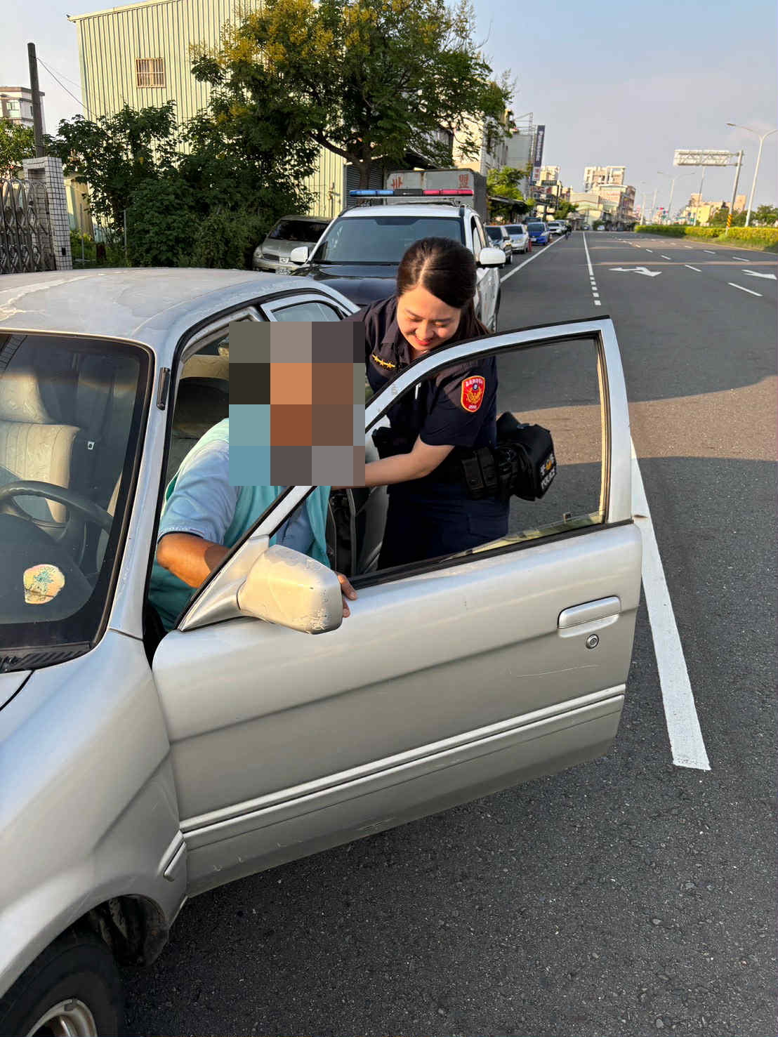 經了解駕駛為一名黃姓老翁(年約71歲),向警方表示:自己駕車外出,不知何原因車輛右前輪突然破裂,導致車輛卡在路中無法動彈,黃姓老翁被車輛突如其來的爆胎狀況嚇得驚慌失措,只能無助的坐在駕駛座,因當時適逢下班時間台1線上車流量大,高速行駛的車子從身旁呼嘯而過險象環生,拋錨車又佔據整個內側車道壓縮道路使用空間,警方未避免釀成交通意外,隨即協助老翁先將拋錨車輛緩緩推至路邊暫時停放。由於當天是假日,附近的修車廠皆無營業,警方透過警政系統查詢到住處及家屬,家人表示會再自行聯繫修車廠處理,因考量當時天氣炎熱且老翁身心俱疲,便護送老翁返回住家,家屬感謝警方及時協助。