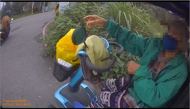 宜蘭分局員山分駐所警員廖鍇驊日前擔服10至12時巡邏勤務,接獲110通報稱:轄內文化路與興農路口處,有一名老婦人因電動代步車疑因沒電,停滯路中動彈不得,請求警方協助。