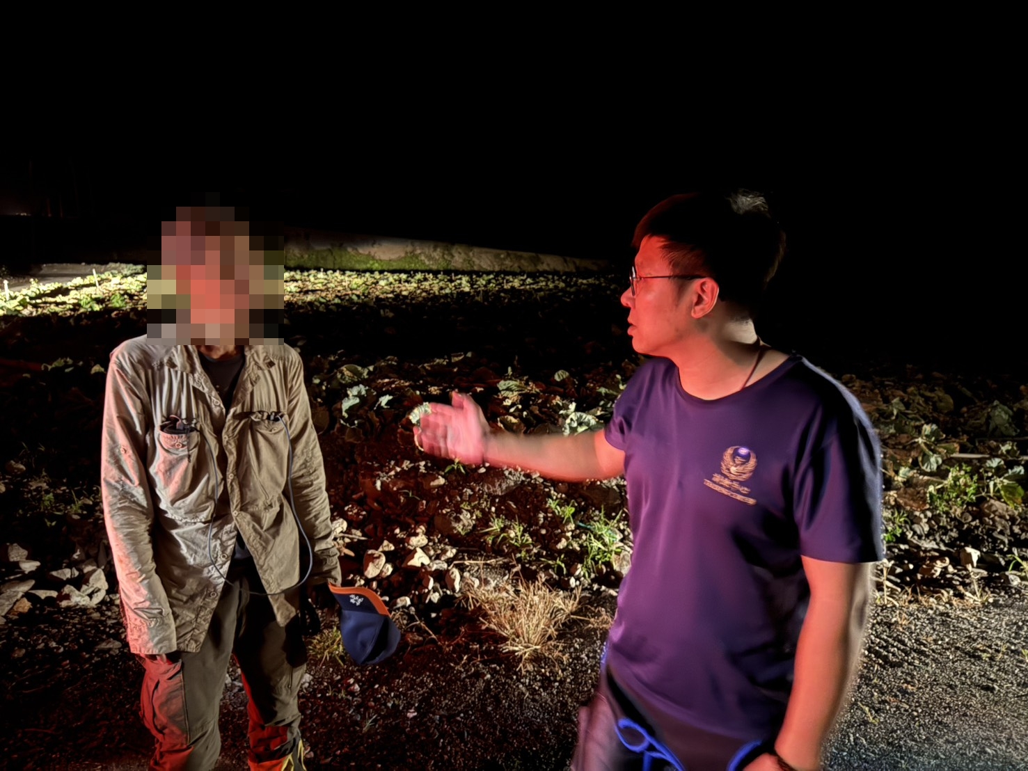 當日晚間20時11分,搜救人員於台七甲線20公里處蘭陽溪床處發現受困周姓民眾(男、57歲)。周民向警方表示,當天下山途中不慎迷途,偏離步道,無法自行脫困。在警方與消防人員陪同下,順利返回台七甲20公里處,並由其自行駕車返家,結束一場虛驚,曾所長為民服務之行為,獲民眾由衷感激。