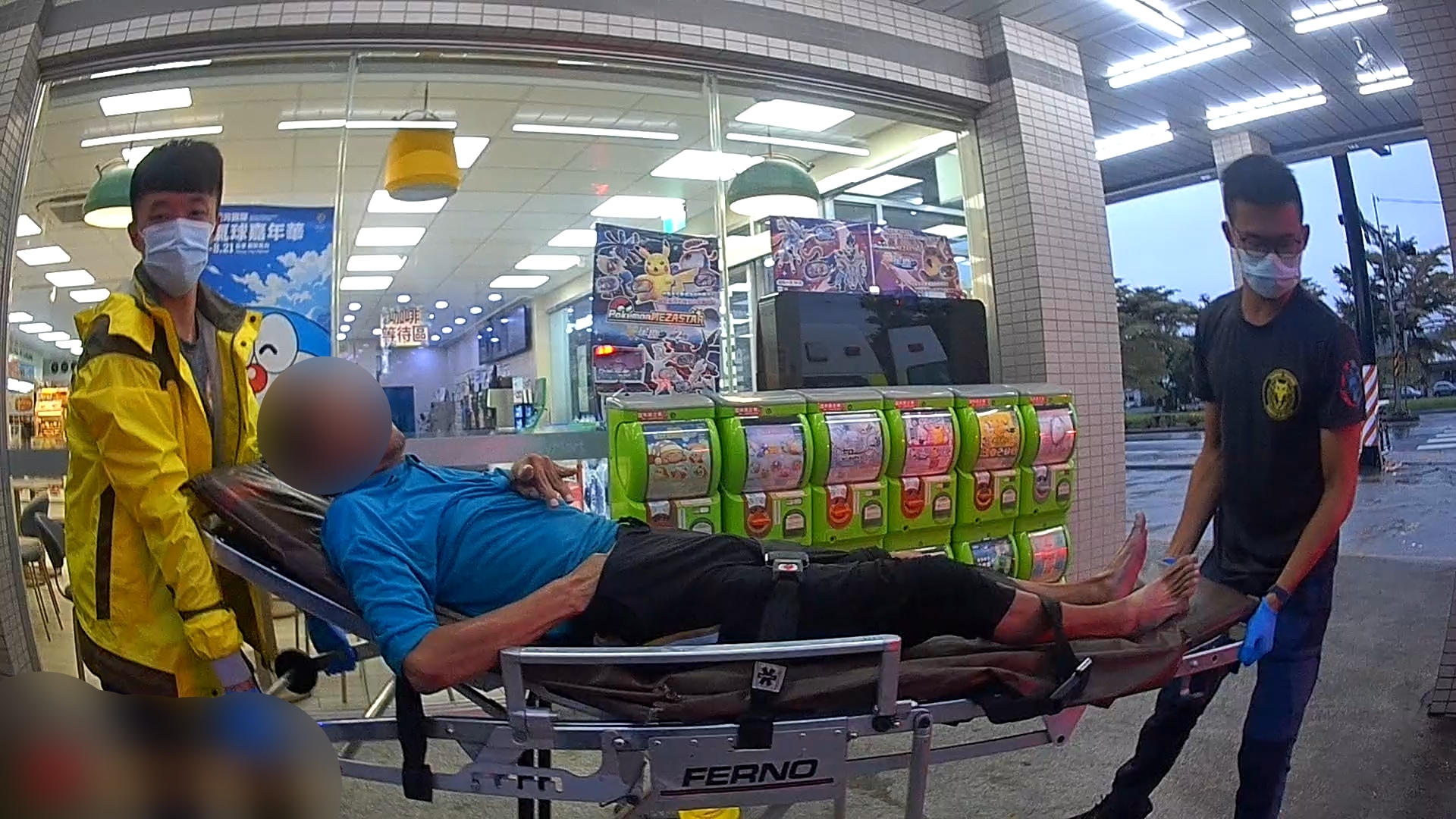 臺東縣警察局關山分局池上聯合所於31日傍晚,接獲民眾報案稱,有一名男子坐在超商前的地板上,看起來神情恍惚、疑似身體不適,擔心其有危險,立即撥打110請警方協助前往處理。池上聯合所警員鍾政霖及羅曉薇獲報後,隨即趕赴現場察看。抵達時,該名男子全身衣物已被雨水淋濕,正坐在地上瑟縮發抖。員警上前關懷詢問,男子語氣虛弱、聲音顫抖,僅能簡單回應,隨後便突然倒地、四肢抽搐,情況十分危急。員警見狀,立即撥打119通報救護,並協助保持男子呼吸道暢通,同時安撫現場民眾情緒,避免圍觀影響急救進行。