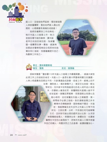 %u8e64%u4eba%u53e3%uff0c%u4e26%u5354%u52a9%u4ed6%u5011%u8fd4%u5bb6%uff0c%u770b%u5230%u88ab%u5354%u5c0b%u4eba%u8207%u5bb6%u5c6c%u5718%u805a%uff0c%u770b%u5230%u4ed6%u5011%u5bb6%u4eba%u9732%u51fa%u7684%u5fae%u7b11%uff0c%u5fc3%u88e1%u7e3d%u6703%u6709%u6eff%u6eff%u7684%u6210%u5c31%u611f%uff01%u6211%u5c07%u6301%u7e8c%u79c9%u6301%u5de5%u4f5c%u7684%u71b1%u5ff1%uff0c%u57f7%u884c%u5931%u8e64%u4eba%u53e3%u67e5%u5c0b%u5de5%u4f5c%uff0c%u52aa%u529b%u8ffd%u67e5%u5404%u7a2e%u53ef%u80fd%u7684%u7dda%u7d22%uff0c%u8b93%u5931%u8e64%u8005%u65e9%u65e5%u627e%u5230%u56de%u5bb6%u7684%u8def%uff0c%u70ba%u5bb6%u5c6c%u5713%u4e00%u500b%u5718%u805a%u7684%u5922%u3002%u6700%u5f8c%uff0c%u611f%u8b1d%u5357%u6295%u7e23%u653f%u5e9c%u8b66%u5bdf%u5c40%u5357%u6295%u5206%u5c40%u9577%u5b98%u7684%u6307%u5c0e%u53ca%u540c%u4ec1%u5354%u52a9%uff0c%u6211%u6703%u7e7c%u7e8c%u63d0%u5347%u81ea%u5df1%uff0c%u70ba%u8b66%u5bdf%u5de5%u4f5c%u52aa%u529b%u3002%u5f88%u69ae%u5e78%u7372%u9078%u300c%u8b66%u653f%u7f72113%u5e74%u5931%u8e64%u4eba%u53e3%u67e5%u5c0b%u5de5%u4f5c%u7e3e%u512a%u54e1%u8b66%u300d%uff0c%u611f%u8b1d%u5927%u5bb6%u5c0d%u6b64%u9805%u5de5%u4f5c%u4e0a%u7684%u5354%u52a9%u53ca%u80af%u5b9a%u3002%u5931%u8e64%u4eba%u53e3%u4e00%u76f4%u662f%u793e%u6703%u5927%u773e%u91cd%u8996%u548c%u95dc%u6ce8%u7684%u8b70%u984c%uff0c%u4eba%u8207%u4eba%u76f8%u8655%u96e3%u514d%u56e0%u60f3%u6cd5%u4e0d%u540c%u3001%u6b20%u7f3a%u6e9d%u901a%u9020%u6210%u8aa4%u6703%uff0c%u6216%u8005%u5de5%u4f5c%u3001%u611f%u60c5%u4e0a%u7684%u4e0d%u5982%u610f%uff0c%u5c0e%u81f4%u5bb6%u4eba%u3001%u89aa%u53cb%u806f%u7e6b%u4e0d%u4e0a%uff0c%u751a%u81f3%u884d%u751f%u81ea%u6bba%u3001%u8f15%u751f%u7b49%u72c0%u6cc1%uff1b%u53e6%u5916%u5bb6%u4e2d%u5982%u6709%u667a%u80fd%u9000%u5316%u7684%u8001%u4eba%u6216%u5e74%u5e7c%u5c0f%u5b69%u8d70%u5931%uff0c%u4ea6%u8b93%u5bb6%u4eba%u8457%u6025%u5982%u711a%uff0c%u5bb6%u5c6c%u671f%u76fc%u5931%u8e64%u89aa%u4eba%u80fd%u5e73%u5e73%u5b89%u5b89%u8fd4%u5bb6%u3002%u63a5%u7372%u6c11%u773e%u5831%u6848%uff0c%u53d7%u7406%u904e%u7a0b%u4ee5%u540c%u7406%u5fc3%u53ca%u8010%u5fc3%u76f8%u5f85%uff0c%u7ad9%u5728%u5bb6%u5c6c%u53ca%u5931%u8e64%u4eba%u7acb%u5834%u8457%u60f3%uff0c%u7b2c%u4e00%u6642%u9593%u7d66%u4e88%u5fc5%u8981%u4e4b%u5354%u52a9%u3002%u5c0d%u65bc%u901a%u5831%u5354%u5c0b%u4e4b%u975e%u672c%u8f44%u6848%u4ef6%u4ea6%u7a4d%u6975%u8fa6%u7406%uff0c%u9762%u5c0d%u60c5%u7dd2%u4e0d%u7a69%u5b9a%u3001%u5931%u667a%u75c7%u3001%u667a%u80fd%u969c%u7919%u53ca%u8d70%u5931%u591a%u5e74%u4e4b%u5931%u8e64%u4eba%u53e3%u7b49%u4e0d%u540c%u72c0%u6cc1%uff0c%u7acb%u5373%u53cd%u61c9%u3001%u5206%u6790%uff0c%u4e0d%u653e%u904e%u4efb%u4f55%u53ef%u80fd%u806f%u7e6b%u65b9%u5f0f%uff0c%u4e26%u91dd%u5c0d%u53ef%u80fd%u51fa%u73fe%u7684%u8655%u6240%u52a0%u4ee5%u6bd4%u5c0d%uff0c%u4ee5%u6c42%u5373%u6642%u5c0b%u7372%u88ab%u5354%u5c0b%u4eba%uff0c%u4fdd%u8b77%u5176%u751f%u547d%u3001%u8eab%u9ad4%u5b89%u5168%uff0c%u4e5f%u8b93%u5bb6%u5c6c%u61f8%u5728%u534a%u7a7a%u7684%u5fc3%u80fd%u5920%u653e%u4e0b%uff0c%u628a%u6bcf%u4ef6%u5931%u8e64%u4eba%u53e3%u6848%u4ef6%u7686%u7576%u4f5c%u81ea%u5df1%u7684%u89aa%u4eba%uff0c%u7528%u76e1%u6d2a%u8352%u4e4b%u529b%u53bb%u67e5%u5c0b%uff0c%u80fd%u8b93%u5bb6%u5c6c%u5b89%u5fc3%u3002%u512a %u55ae%u4f4d%uff1a%u96f2%u6797%u7e23%u8b66%u5bdf%u5c40%u3000%u3000%u8077%u5225%uff1a%u8b66%u54e1 %u59d3%u540d%uff1a%u5289%u5b78%u878d24 %u8b66%u5149%u30002025.8%u3000829%u671f