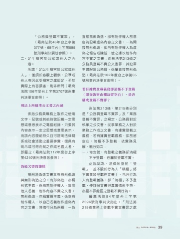 %u300c%u516c%u52d9%u54e1%u767b%u8f09%u4e0d%u5be6%u7f6a%u300d%u3002%uff08%u6700%u9ad8%u6cd5%u966246%u5e74%u53f0%u4e0a%u5b57%u7b2c377%u865f%u300169%u5e74%u53f0%u4e0a%u5b57%u7b2c595%u865f%u5211%u4e8b%u5224%u6c7a%u8981%u65e8%u53c3%u7167%uff09%u3002%u4e8c%u3001%u8db3%u751f%u640d%u5bb3%u65bc%u516c%u773e%u6216%u4ed6%u4eba%u4e4b%u5167%u6db5%u3002%u6240%u8b02%u300c%u8db3%u4ee5%u751f%u640d%u5bb3%u65bc%u516c%u773e%u6216%u4ed6%u4eba%u300d%uff0c%u50c5%u9808%u65bc%u5ba2%u89c0%u4e0a%u89c0%u5bdf%uff0c%u516c%u773e%u6216%u4ed6%u4eba%u6709%u56e0%u6b64%u53d7%u640d%u5bb3%u4e4b%u865e%u5373%u8db3%uff0c%u81f3%u65bc%u5be6%u969b%u4e0a%u6709%u5426%u640d%u5bb3%uff0c%u5247%u975e%u6240%u554f%uff08%u6700%u9ad8%u6cd5%u9662106%u5e74%u5ea6%u53f0%u4e0a%u5b57%u7b2c3707%u865f%u5211%u4e8b%u5224%u6c7a%u8981%u65e8%u53c3%u7167%uff09%u3002%u5211%u6cd5%u4e0a%u6240%u7a31%u6e96%u516c%u6587%u66f8%u4e4b%u5167%u6db5%u4fc2%u6307%u516c%u52d9%u54e1%u8077%u52d9%u4e0a%u88fd%u4f5c%u4e4b%u4f7f%u7528%u6587%u5b57%u3001%u8a18%u865f%u6216%u5176%u4ed6%u7b26%u865f%u8a18%u8f09%u4e00%u5b9a%u601d%u60f3%u6216%u610f%u601d%u8868%u793a%u4e4b%u96fb%u78c1%u7d00%u9304%uff0c%u53ea%u8981%u5176%u5167%u5bb9%u8868%u793a%u4e00%u5b9a%u4e4b%u601d%u60f3%u6216%u610f%u601d%u8868%u793a%uff0c%u800c%u8a72%u5167%u5bb9%u5fa9%u80fd%u6301%u4e45%u4e14%u53ef%u8b49%u660e%u6cd5%u5f8b%u95dc%u4fc2%u6216%u793e%u6703%u6d3b%u52d5%u4e4b%u91cd%u8981%u4e8b%u5be6%uff0c%u5fa9%u5177%u6709%u660e%u793a%u6216%u53ef%u5f97%u800c%u77e5%u4e4b%u4f5c%u6210%u540d%u7fa9%u4eba%u8005%uff0c%u5373%u5c6c%u4e4b%uff08%u6700%u9ad8%u6cd5%u9662112%u5e74%u5ea6%u53f0%u4e0a%u5b57%u7b2c4210%u865f%u5224%u6c7a%u610f%u65e8%u53c3%u7167%uff09%u3002%u507d%u9020%u6587%u66f8%u7684%u614b%u6a23%u6309%u5211%u6cd5%u507d%u9020%u6587%u66f8%u672c%u6709%u6709%u5f62%u507d%u9020%u8207%u7121%u5f62%u507d%u9020%u4e4b%u5206%uff1a%u6709%u5f62%u507d%u9020%uff0c%u4ea6%u7a31%u5f62%u5f0f%u4e3b%u7fa9%uff0c%u4fc2%u6307%u7121%u5236%u4f5c%u6b0a%u4eba%uff0c%u5192%u7528%u4ed6%u4eba%u540d%u7fa9%uff0c%u5236%u4f5c%u5167%u5bb9%u4e0d%u5be6%u4e4b%u6587%u66f8%uff1b%u7121%u5f62%u507d%u9020%uff0c%u4ea6%u7a31%u5be6%u8cea%u4e3b%u7fa9%uff0c%u4fc2%u6307%u6709%u5236%u4f5c%u6b0a%u4eba%uff0c%u4ee5%u81ea%u5df1%u540d%u7fa9%u5236%u4f5c%u865b%u507d%u5167%u5bb9%u4e4b%u6587%u66f8%uff1b%u5176%u60c5%u53ef%u5206%u70ba%u5169%u7a2e%uff1a%u4e00%u70ba%u76f4%u63a5%u7121%u5f62%u507d%u9020%uff0c%u5373%u6709%u5236%u4f5c%u6b0a%u4eba%u6545%u610f%u81ea%u70ba%u8a18%u8f09%u865b%u507d%u5167%u5bb9%u4e4b%u6587%u66f8%uff1b%u4e00%u70ba%u9593%u63a5%u7121%u5f62%u507d%u9020%uff0c%u5373%u5411%u6709%u5236%u4f5c%u6b0a%u4eba%u70ba%u865b%u507d%u4e4b%u5831%u544a%u6216%u9673%u8ff0%uff0c%u4f7f%u4e4b%u64da%u4ee5%u5236%u4f5c%u5167%u5bb9%u4e0d%u5be6%u4e4b%u6587%u66f8%uff1b%u800c%u5211%u6cd5%u7b2c213%u689d%u4e4b%u516c%u52d9%u54e1%u767b%u8f09%u4e0d%u5be6%u516c%u6587%u66f8%u7f6a%uff0c%u5176%u72af%u7f6a%u4e3b%u9ad4%u9650%u65bc%u516c%u52d9%u54e1%uff0c%u4fc2%u5c6c%u76f4%u63a5%u7121%u5f62%u507d%u9020%uff08%u6700%u9ad8%u6cd5%u9662102%u5e74%u5ea6%u53f0%u4e0a%u5b57%u7b2c65%u865f%u5211%u4e8b%u5224%u6c7a%u8981%u65e8%u53c3%u7167%uff09%u3002%u82e5%u6709%u64da%u5be6%u767b%u8f09%u7fa9%u52d9%u537b%u6d88%u6975%u4e0d%u4e88%u767b%u8f09%uff08%u5373%u67e5%u8a62%u4e8b%u7531%u6b04%u6545%u7559%u7a7a%u767d%uff09%uff0c%u662f%u5426%u69cb%u6210%u767b%u8f09%u4e0d%u5be6%u7f6a%uff1f%u5211%u6cd5%u7b2c213%u689d%u3001%u7b2c215%u689d%u5206%u5225%u662f%u300c%u516c%u52d9%u54e1%u767b%u8f09%u4e0d%u5be6%u7f6a%u300d%u53ca%u300c%u696d%u52d9%u767b%u8f09%u4e0d%u5be6%u7f6a%u300d%u4e4b%u898f%u5b9a%uff0c%u516c%u52d9%u54e1%u5c0d%u65bc%u57f7%u638c%u4e4b%u516c%u6587%u66f8%u3001%u5f9e%u4e8b%u696d%u52d9%u4e4b%u4eba%u5c0d%u65bc%u696d%u52d9%u4e0a%u4f5c%u6210%u4e4b%u6587%u66f8%uff0c%u6709%u64da%u5be6%u767b%u8f09%u4e4b%u7fa9%u52d9%uff0c%u82e5%u6709%u64da%u5be6%u767b%u8f09%u7fa9%u52d9%uff0c%u537b%u6545%u7559%u7a7a%u767d%u3001%u6d88%u6975%u4e0d%u4e88%u767b%u8f09%uff0c%u4f9d%u5be6%u52d9%u898b%u89e3%uff0c%u6982%u5206%u5982%u6b21%uff1a%u4e00%u3001%u80af%u5b9a%u8aaa%uff1a%u6709%u767b%u8f09%u4e4b%u7fa9%u52d9%u537b%u6d88%u6975%u4e0d%u4e88%u767b%u8f09%uff0c%u4e5f%u5c6c%u65bc%u767b%u8f09%u4e0d%u5be6%u3002%u6b64%u8aaa%u8a8d%u70ba%uff0c%u6cd5%u689d%u6240%u6307%u7684%u300c%u767b%u8f09%u300d%uff0c%u4e26%u4e0d%u9650%u65bc%u884c%u70ba%u4eba%u300c%u7a4d%u6975%u300d%u5c07%u4e0d%u5be6%u4e8b%u9805%u767b%u8f09%u5728%u6587%u66f8%u4e0a%uff0c%u5305%u542b%u884c%u70ba%u4eba%u6709%u767b%u8f09%u7fa9%u52d9%uff0c%u537b%u300c%u6d88%u6975%u300d%u4e0d%u4e88%u767b%u8f09%uff0c%u4f7f%u8a72%u4efd%u6587%u66f8%u8207%u771f%u5be6%u60c5%u5f62%u4e0d%u7b26%uff0c%u4ea6%u5c6c%u672c%u7f6a%u8655%u7f70%u4e4b%u767b%u8f09%u4e0d%u5be6%u884c%u70ba%u3002%u6700%u9ad8%u6cd5%u9662 9 4 %u5e74%u5ea6%u53f0%u4e0a%u5b57%u7b2c2596%u865f%u5211%u4e8b%u5224%u6c7a%u6307%u51fa%uff1a%u300c%u5211%u6cd5%u7b2c215%u689d%u696d%u52d9%u4e0a%u767b%u8f09%u4e0d%u5be6%u6587%u66f8%u7f6a%u4e4b%u8655%u8b66%u5149%u30002025.8%u3000829%u671f 39