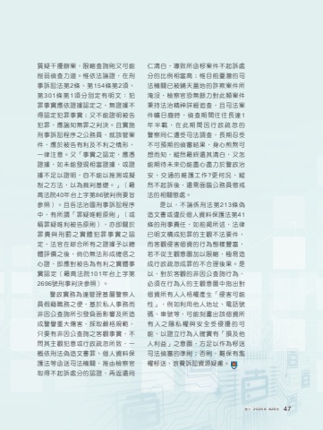 %u8cea%u7591%u5e72%u64fe%u8fa6%u6848%uff0c%u9650%u7e2e%u67e5%u8a62%u5247%u53c8%u53ef%u80fd%u524a%u5f31%u5075%u67e5%u529b%u9053%u3002%u60df%u4f9d%u6cd5%u8ad6%u8b49%uff0c%u5728%u5211%u4e8b%u8a34%u8a1f%u6cd5%u7b2c2%u689d%u3001%u7b2c154%u689d%u7b2c2%u9805%u3001%u7b2c301%u689d%u7b2c1%u9805%u5206%u5225%u5b9a%u6709%u660e%u6587%uff1a%u72af%u7f6a%u4e8b%u5be6%u61c9%u4f9d%u8b49%u64da%u8a8d%u5b9a%u4e4b%uff0c%u7121%u8b49%u64da%u4e0d%u5f97%u8a8d%u5b9a%u72af%u7f6a%u4e8b%u5be6%uff1b%u53c8%u4e0d%u80fd%u8b49%u660e%u88ab%u544a%u72af%u7f6a%uff0c%u61c9%u8aed%u77e5%u7121%u7f6a%u4e4b%u5224%u6c7a%u3002%u4e14%u5be6%u65bd%u5211%u4e8b%u8a34%u8a1f%u7a0b%u5e8f%u4e4b%u516c%u52d9%u54e1%uff0c%u5c31%u8a72%u7ba1%u6848%u4ef6%uff0c%u61c9%u65bc%u88ab%u544a%u6709%u5229%u53ca%u4e0d%u5229%u4e4b%u60c5%u5f62%uff0c%u4e00%u5f8b%u6ce8%u610f%u3002%u53c8%u300c%u4e8b%u5be6%u4e4b%u8a8d%u5b9a%uff0c%u61c9%u6191%u8b49%u64da%uff0c%u5982%u672a%u80fd%u767c%u73fe%u76f8%u7576%u8b49%u64da%uff0c%u6216%u8b49%u64da%u4e0d%u8db3%u4ee5%u8b49%u660e%uff0c%u81ea%u4e0d%u80fd%u4ee5%u63a8%u6e2c%u6216%u64ec%u5236%u4e4b%u65b9%u6cd5%uff0c%u4ee5%u70ba%u88c1%u5224%u57fa%u790e%u3002%u300d%uff08%u6700%u9ad8%u6cd5%u966240%u5e74%u53f0%u4e0a%u5b57%u7b2c86%u865f%u5224%u4f8b%u8981%u65e8%u53c3%u7167%uff09%u3002%u4e14%u5404%u6cd5%u6cbb%u570b%u5211%u4e8b%u8a34%u8a1f%u7a0b%u5e8f%u4e2d%uff0c%u6709%u6240%u8b02%u300c%u7f6a%u7591%u552f%u8f15%u539f%u5247%u300d%uff08%u6216%u7a31%u7f6a%u7591%u552f%u5229%u88ab%u544a%u539f%u5247%uff09%uff0c%u4ea6%u5373%u95dc%u65bc%u7f6a%u8cac%u8207%u5211%u7f70%u4e4b%u5be6%u9ad4%u72af%u7f6a%u4e8b%u5be6%u4e4b%u8a8d%u5b9a%uff0c%u6cd5%u5b98%u5728%u7d9c%u5408%u6240%u6709%u4e4b%u8b49%u64da%u4e88%u4ee5%u7e3d%u9ad4%u8a55%u50f9%u4e4b%u5f8c%uff0c%u5018%u4ecd%u7121%u6cd5%u5f62%u6210%u78ba%u4fe1%u4e4b%u5fc3%u8b49%uff0c%u5373%u61c9%u5c0d%u88ab%u544a%u70ba%u6709%u5229%u4e4b%u5be6%u9ad4%u4e8b%u5be6%u8a8d%u5b9a%uff08%u6700%u9ad8%u6cd5%u9662101%u5e74%u53f0%u4e0a%u5b57%u7b2c2696%u865f%u5211%u4e8b%u5224%u6c7a%u53c3%u7167%uff09%u3002%u8b66%u653f%u5be6%u52d9%u70ba%u9054%u7ba1%u7406%u57fa%u5c64%u8b66%u5bdf%u4eba%u54e1%u5047%u85c9%u8077%u52d9%u4e4b%u4fbf%uff0c%u57fa%u65bc%u79c1%u4eba%u4e8b%u52d9%u800c%u975e%u56e0%u516c%u67e5%u8a62%u6240%u5f15%u767c%u8ca0%u9762%u5f71%u97ff%u53ca%u6240%u9020%u6210%u8b66%u8b7d%u91cd%u5927%u50b7%u5bb3%uff0c%u63a1%u53d6%u56b4%u683c%u898f%u7bc4%uff0c%u53ea%u8981%u6709%u975e%u56e0%u516c%u67e5%u8a62%u4e4b%u5ba2%u89c0%u4e8b%u5be6%uff0c%u4e0d%u554f%u5176%u4e3b%u89c0%u72af%u610f%u6216%u884c%u653f%u758f%u5ffd%u6240%u81f4%uff0c%u4e00%u6982%u4f9d%u5211%u6cd5%u507d%u9020%u6587%u66f8%u7f6a%u3001%u500b%u4eba%u8cc7%u6599%u4fdd%u8b77%u6cd5%u7b49%u51fd%u9001%u53f8%u6cd5%u6a5f%u95dc%uff0c%u63a8%u7531%u6aa2%u5bdf%u5b98%u53d6%u5f97%u4e0d%u8d77%u8a34%u8655%u5206%u7684%u8a8d%u8b49%uff0c%u518d%u8fd4%u9084%u540c%u4ec1%u6e05%u767d%uff0c%u5c0e%u81f4%u6240%u51fd%u79fb%u6848%u4ef6%u4e0d%u8d77%u8a34%u8655%u5206%u7684%u6bd4%u4f8b%u76f8%u7576%u9ad8%uff1b%u60df%u76ee%u524d%u81fa%u7063%u7684%u53f8%u6cd5%u6a5f%u95dc%u5df2%u88ab%u92ea%u5929%u84cb%u5730%u7684%u8a50%u6b3a%u6848%u4ef6%u6240%u6df9%u6c92%uff0c%u6aa2%u5bdf%u5b98%u6050%u7121%u9918%u529b%u5c0d%u6b64%u985e%u6848%u4ef6%u79c9%u6301%u6cd5%u6cbb%u7cbe%u795e%u8a73%u7d30%u8ffd%u67e5%uff0c%u4e14%u53f8%u6cd5%u6848%u4ef6%u66e0%u65e5%u5ee2%u6642%uff0c%u5075%u67e5%u671f%u9593%u5f80%u5f80%u9577%u90541%u5e74%u534a%u8f09%uff0c%u5728%u6b64%u671f%u9593%u56e0%u884c%u653f%u758f%u5ffd%u7684%u8b66%u5bdf%u540c%u4ec1%u906d%u53d7%u53f8%u6cd5%u8abf%u67e5%uff0c%u9577%u671f%u5fcd%u53d7%u4e0d%u53ef%u9810%u671f%u7684%u5075%u5be9%u7d50%u679c%uff0c%u8eab%u5fc3%u714e%u71ac%u53ef%u60f3%u800c%u77e5%uff0c%u7e31%u7136%u6700%u7d42%u9084%u5176%u6e05%u767d%uff0c%u53c8%u600e%u80fd%u671f%u5f85%u672a%u4f86%u4ecd%u80fd%u76e1%u5fc3%u76e1%u529b%u65bc%u8b66%u653f%u6cbb%u5b89%u3001%u4ea4%u901a%u7684%u7dad%u8b77%u5de5%u4f5c?%u66f4%u4f55%u6cc1%uff0c%u7e31%u7136%u4e0d%u8d77%u8a34%u5f8c%uff0c%u9084%u9700%u9762%u81e8%u516c%u52d9%u54e1%u61f2%u6212%u6cd5%u7684%u76f8%u95dc%u61f2%u8655%u3002%u662f%u4ee5%uff0c%u4e0d%u8ad6%u4fc2%u5211%u6cd5%u7b2c213%u689d%u507d%u9020%u6587%u66f8%u6216%u9055%u53cd%u500b%u4eba%u8cc7%u6599%u4fdd%u8b77%u6cd5%u7b2c41%u689d%u7684%u5211%u4e8b%u8cac%u4efb%uff0c%u5982%u524d%u63ed%u6240%u8ff0%uff0c%u6cd5%u5f8b%u5df2%u660e%u6587%u69cb%u6210%u72af%u7f6a%u7684%u4e3b%u89c0%u4e0d%u6cd5%u8981%u4ef6%uff0c%u800c%u5ba2%u89c0%u4fb5%u5bb3%u500b%u8cc7%u7684%u884c%u70ba%u614b%u6a23%u8c50%u5bcc%uff0c%u82e5%u4e0d%u5f9e%u4e3b%u89c0%u610f%u5716%u52a0%u4ee5%u9650%u7e2e%uff0c%u6975%u6613%u9020%u6210%u884c%u653f%u758f%u5ffd%u6210%u7f6a%u7684%u4e0d%u5408%u7406%u5f8c%u679c%u3002%u662f%u4ee5%uff0c%u5c0d%u65bc%u5ba2%u89c0%u7684%u975e%u56e0%u516c%u67e5%u8a62%u884c%u70ba%uff0c%u5fc5%u9808%u5728%u884c%u70ba%u4eba%u7684%u4e3b%u89c0%u610f%u5716%u4e2d%u6307%u51fa%u5c0d%u500b%u8cc7%u6240%u6709%u4eba%u4eba%u683c%u6b0a%u7522%u751f%u300c%u4fb5%u5bb3%u53ef%u80fd%u6027%u300d%uff0c%u4f8b%u5982%u5229%u7528%u4ed6%u4eba%u5730%u5740%u3001%u96fb%u8a71%u865f%u78bc%u3001%u8eca%u865f%u7b49%uff0c%u53ef%u80fd%u523b%u756b%u51fa%u8a72%u500b%u8cc7%u6240%u6709%u4eba%u4e4b%u96b1%u79c1%u6b0a%u8207%u5b89%u5168%u53d7%u4fb5%u64fe%u7684%u53ef%u80fd%uff0c%u4ee5%u8b49%u7acb%u884c%u70ba%u4eba%u78ba%u5be6%u6709%u300c%u640d%u53ca%u4ed6%u4eba%u5229%u76ca%u300d%u4e4b%u610f%u5716%uff0c%u65b9%u8db3%u4ee5%u4f5c%u70ba%u79fb%u9001%u53f8%u6cd5%u5075%u5be9%u7684%u6e96%u5247%uff1b%u5426%u5247%uff0c%u96e3%u4fdd%u6709%u6feb%u6b0a%u79fb%u9001%u3001%u6d6a%u8cbb%u8a34%u8a1f%u8cc7%u6e90%u7591%u616e%u3002%u8b66%u5149%u30002025.8%u3000829%u671f 47