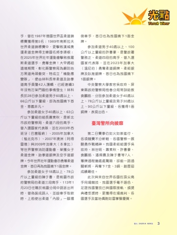 %u624b%uff0c%u66fe%u57281987%u5e74%u5fb7%u570b%u4e16%u754c%u76c3%u67d4%u9053%u9326%u6a19%u8cfd%u7372%u5f97%u7b2c5%u540d%uff1b1989%u5e74%u5357%u65af%u62c9%u592b%u4e16%u754c%u67d4%u9053%u9326%u6a19%u8cfd%u4e2d%uff0c%u66f4%u64ca%u6557%u6f22%u57ce%u5967%u904b%u67d4%u9053%u91d1%u724c%u5f97%u4e3b%u97d3%u570b%u540d%u5c07%u674e%u749f%u6839%uff1b%u57282025%u5e74%u4e16%u754c%u58ef%u5e74%u904b%u52d5%u6703%u64ca%u6557%u4fc4%u7f85%u65af%u67d4%u9053%u9078%u624b%uff0c%u52c7%u596a%u91d1%u724c%uff01%u5927%u7532%u5abd%u7956%u9076%u5883%u671f%u9593%uff0c%u5f70%u5316%u7e23%u8b66%u5bdf%u5c40%u70ba%u56b4%u9632%u5730%u65b9%u9ed1%u9053%u89d2%u982d%u885d%u7a81%uff0c%u7279%u6210%u7acb%u300c%u6a5f%u52d5%u61c9%u8b8a%u968a%u300d%uff0c%u4fbf%u7531%u6797%u79d1%u9577%u7387%u67d4%u9053%u53ca%u8dc6%u62f3%u9053%u9ad8%u624b%u54e1%u8b6642%u4eba%u8b77%u8f4e%uff0c%u5df2%u7d93%u9023%u7e8c3%u5e74%u6c92%u6709%u6253%u67b6%u9b25%u6bc6%u7684%u4e8b%u60c5%u767c%u751f%uff01%u6797%u79d1%u9577%u65bc28%u65e5%u53c3%u52a0%u67d4%u9053%u7537%u5b5060%u6b72%u4ee5%u4e0a%u300166%u516c%u65a4%u4ee5%u4e0b%u91cf%u7d1a%uff0c%u5373%u70ba%u6211%u570b%u6458%u4e0b%u9996%u91d1%uff0c%u610f%u7fa9%u975e%u51e1%u3002%u53c3%u52a0%u67d4%u9053%u5973%u5b5040%u6b72%u4ee5%u4e0a%u300163%u516c%u65a4%u4ee5%u4e0b%u91cf%u7d1a%u7684%u7d44%u9577%u856d%u7d20%u79cb%uff0c%u662f%u65b0%u5317%u5e02%u653f%u5e9c%u8b66%u5bdf%u5c40%u3001%u67d4%u9053%u516d%u6bb5%u7684%u9ad8%u624b%uff0c%u66fe%u5165%u9078%u570b%u5bb6%u4ee3%u8868%u968a%uff0c%u4e26%u57282003%u5e74%u897f%u73ed%u7259%uff08%u5df4%u585e%u9686%u7d0d%uff09%u30012005%u5e74%u52a0%u62ff%u5927%uff08%u9b41%u5317%u514b%u5e02%uff09%u30012007%u5e74%u6fb3%u6d32%uff08%u963f%u5f97%u96f7%u5fb7%uff09%u82072009%u5e74%u52a0%u62ff%u5927%uff08%u672c%u62ff%u6bd4%uff09%u7b49%u4e16%u754c%u8b66%u5bdf%u6d88%u9632%u904b%u52d5%u6703%uff0c%u69ae%u7372%u5973%u5b50%u67d4%u9053%u91d1%u724c%u3001%u8dc6%u62f3%u9053%u9280%u724c%u53ca%u7a7a%u624b%u9053%u9280%u724c%u3002%u4eca%u5e74%u4e16%u754c%u58ef%u5e74%u904b%u52d5%u6703%u4ea6%u52c7%u596a%u67d4%u9053%u91d1%u724c%uff0c%u9996%u65e5%u518d%u70ba%u6211%u570b%u6458%u4e0b1%u9762%u91d1%u724c%u3002%u53c3%u52a0%u67d4%u9053%u5973%u5b5018%u6b72%u4ee5%u4e0a%u300178%u516c%u65a4%u4ee5%u4e0a%u91cf%u7d1a%u7684%u9673%u4e8e%u66f8%uff0c%u662f%u6843%u5712%u5e02%u653f%u5e9c%u8b66%u5bdf%u5c40%u7684%u67d4%u9053%u4e09%u6bb5%u9ad8%u624b%uff0c113%u5e741%u670823%u65e5%u4efb%u8077%u65bc%u6843%u5712%u5206%u5c40%u4e2d%u8def%u6d3e%u51fa%u6240%u6642%uff0c%u66fe%u507d%u88dd%u6210%u8def%u4eba%uff0c%u4e26%u8d81%u8eca%u624b%u53d6%u6b3e%u6642%uff0c%u4e0a%u524d%u4f7f%u51fa%u67d4%u9053%u300c%u5167%u80a1%u300d%u4e00%u8173%u6482%u5012%u8eca%u624b%uff0c%u9996%u65e5%u4e5f%u70ba%u6211%u570b%u6458%u4e0b1%u9762%u91d1%u724c%u3002%u53c3%u52a0%u67d4%u9053%u7537%u5b5040%u6b72%u4ee5%u4e0a%u3001100%u516c%u65a4%u4ee5%u4e0a%u91cf%u7d1a%u7684%u8a31%u66f8%u8c6a%uff0c%u662f%u8b66%u653f%u7f72%u8b66%u52d9%u6b63%u3001%u67d4%u9053%u56db%u6bb5%u7684%u9ad8%u624b%uff0c%u66fe%u5165%u9078%u570b%u5bb6%u4ee3%u8868%u968a%uff0c%u4e26%u57282023%u5e74%u52a0%u62ff%u5927%uff08%u6eab%u5c3c%u4f2f%uff09%u52c7%u596a%u67d4%u9053%u9285%u724c%u3001%u67d4%u8853%u9280%u724c%u53ca%u81e5%u63a8%u9280%u724c%uff0c%u9996%u65e5%u4e5f%u70ba%u6211%u570b%u6458%u4e0b1%u9762%u9280%u724c%u3002%u4e2d%u592e%u8b66%u5bdf%u5927%u5b78%u6559%u5b98%u5433%u73ab%u73b2%u3001%u5c4f%u6771%u7e23%u653f%u5e9c%u8b66%u5bdf%u5c40%u6046%u6625%u5206%u5c40%u5e38%u8a13%u52a9%u6559%u8881%u9d6c%u7693%uff0c%u5206%u5225%u53c3%u52a0%u67d4%u9053%u5973%u5b5040%u6b72%u4ee5%u4e0a%u300178%u516c%u65a4%u4ee5%u4e0a%u91cf%u7d1a%u53ca%u7537%u5b5030%u6b72%u4ee5%u4e0a%u300190%u516c%u65a4%u4ee5%u4e0b%u91cf%u7d1a%uff0c%u5404%u7372%u5f971%u9762%u9285%u724c%uff0c%u8868%u73fe%u51fa%u8272%u3002%u81fa%u7063%u8b66%u6240%u5411%u62ab%u9761%u7b2c%u4e8c%u65e5%u8cfd%u4e8b%u4ecd%u5982%u706b%u5982%u837c%u9032%u884c%uff0c%u5404%u9805%u7af6%u8cfd%u4e0d%u5206%u8ed2%u8f0a%uff0c%u5404%u570b%u8b66%u5bdf%u4e00%u5c55%u9a4d%u52c7%u4f5c%u6230%u7cbe%u795e%u3002%u6211%u570b%u67d4%u8853%u7d44%u9078%u624b%u5433%u73ab%u73b2%u3001%u6797%u4e16%u660e%u3001%u856d%u7d20%u79cb%u3001%u8a31%u66f8%u8c6a%u3001%u8881%u9d6c%u7693%u3001%u6f58%u821c%u8fb2%u53ca%u9673%u4e8e%u66f8%u7b497%u4eba%uff0c%u596a%u724c%u904e%u7a0b%u96d6%u8655%u8655%u9a5a%u96aa%uff0c%u537b%u80fd%u4e00%u8def%u904e%u95dc%u65ac%u5c07%uff0c%u518d%u596a%u4e0b7%u91d1%u30013%u9285%uff0c%u5275%u6b77%u5c46%u6210%u7e3e%u6700%u4f73%u3002%u6b64%u6b21%u8207%u4f86%u81ea%u4e16%u754c%u5404%u570b%u7684%u9802%u5c16%u9ad8%u624b%u540c%u5834%u7af6%u6280%uff0c%u6211%u570b%u9078%u624b%u6beb%u4e0d%u905c%u8272%uff0c%u8db3%u8b49%u6211%u570b%u8b66%u6280%u5df2%u8207%u570b%u969b%u63a5%u8ecc%uff0c%u9812%u734e%u5178%u79ae%u53d7%u734e%u6642%uff0c%u66f4%u7372%u5f97%u5728%u5834%u88c1%u5224%u3001%u5404%u570b%u9078%u624b%u53ca%u7576%u5730%u50d1%u80de%u5982%u96f7%u638c%u8072%u6176%u8cc0%u3002%u8b66%u5149%u30002025.8%u3000829%u671f 3