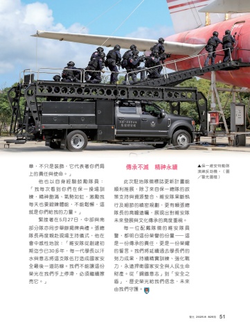 %u7ae0%uff0c%u4e0d%u53ea%u662f%u88dd%u98fe%uff0c%u5b83%u4ee3%u8868%u8457%u4f60%u5011%u80a9%u4e0a%u7684%u8cac%u4efb%u8207%u4f7f%u547d%u3002%u300d%u4ed6%u4e5f%u4ee5%u81ea%u8eab%u7d93%u9a57%u9f13%u52f5%u968a%u54e1%uff1a%u300c%u6211%u6bcf%u6b21%u770b%u5230%u4f60%u5011%u5728%u4fdd%u4e00%u64cd%u5834%u8a13%u7df4%uff0c%u7cbe%u795e%u98fd%u6eff%u3001%u6c23%u52e2%u5982%u8679%uff0c%u6fc0%u52f5%u6211%u6bcf%u5929%u4e5f%u8981%u935b%u934a%u9ad4%u80fd%uff0c%u4e0d%u80fd%u9b06%u61c8%uff0c%u9019%u5c31%u662f%u4f60%u5011%u7d66%u6211%u7684%u529b%u91cf%u3002%u300d%u7dca%u63a5%u8457%u57285%u670827%u65e5%uff0c%u4e2d%u90e8%u8207%u5357%u90e8%u5206%u968a%u4ea6%u540c%u6b65%u8209%u8fa6%u63ed%u724c%u5178%u79ae%u3002%u5f35%u7e3d%u968a%u9577%u518d%u5ea6%u89aa%u8d74%u73fe%u5834%u4e3b%u6301%u5100%u5f0f%uff0c%u4ed6%u5728%u6703%u4e2d%u611f%u6027%u5730%u8aaa%uff1a%u300c%u7dad%u5b89%u968a%u5f9e%u5275%u5efa%u521d%u671f%u8fc4%u4eca%u5df230%u591a%u5e74%uff0c%u6bcf%u4e00%u4ee3%u5b78%u9577%u4ee5%u6c57%u6c34%u8207%u610f%u5fd7%u5c07%u9019%u652f%u968a%u4f0d%u6253%u9020%u6210%u570b%u5bb6%u5b89%u5168%u6700%u5f8c%u4e00%u9053%u9632%u7dda%u3002%u6211%u5011%u4e0d%u80fd%u8b93%u9019%u4efd%u69ae%u5149%u5728%u6211%u5011%u624b%u4e0a%u505c%u6eef%uff0c%u5fc5%u9808%u7e7c%u7e8c%u64e6%u4eae%u5b83%u3002%u300d%u50b3%u627f%u4e0d%u6ec5%u3000%u7cbe%u795e%u6c38%u7e8c%u6b64%u6b21%u99d0%u5730%u968a%u5fbd%u6a19%u8a8c%u66f4%u65b0%u8a08%u756b%u80fd%u9806%u5229%u63a8%u5c55%uff0c%u9664%u4e86%u4f86%u81ea%u4fdd%u4e00%u7e3d%u968a%u7684%u653f%u7b56%u652f%u6301%u8207%u8cc7%u6e90%u6574%u5408%u3001%u7dad%u5b89%u968a%u679c%u65b7%u57f7%u884c%u53ca%u7d30%u7bc0%u7684%u7e1d%u5bc6%u898f%u5283%uff0c%u66f4%u6709%u8cf4%u5f35%u7e3d%u968a%u9577%u7684%u9ad8%u77bb%u9060%u77da%uff0c%u5c55%u73fe%u51fa%u5c0d%u7dad%u5b89%u968a%u672a%u4f86%u767c%u5c55%u8207%u6587%u5316%u50b3%u627f%u7684%u9ad8%u5ea6%u91cd%u8996%u3002%u6bcf%u4e00%u4f4d%u914d%u6234%u968a%u5fbd%u7684%u7dad%u5b89%u968a%u54e1%u8b66%uff0c%u90fd%u660e%u767d%u9019%u4efd%u69ae%u8b7d%u7684%u4efd%u91cf%u2014%u9019%u662f%u4e00%u4efd%u50b3%u627f%u7684%u8cac%u4efb%uff0c%u66f4%u662f%u4e00%u4efd%u69ae%u8000%u7684%u8a93%u8a00%u3002%u6211%u5011%u5c07%u5ef6%u7e8c%u904e%u53bb%u5b78%u9577%u5011%u7684%u52aa%u529b%u6210%u679c%uff0c%u6301%u7e8c%u7cbe%u5be6%u8a13%u7df4%u3001%u5f37%u5316%u6230%u529b%uff0c%u6c38%u9060%u634d%u885b%u570b%u5bb6%u5b89%u5168%u8207%u4eba%u6c11%u751f%u547d%u8ca1%u7522%u3002%u5f9e%u300c%u92fc%u9435%u610f%u5fd7%u300d%u5230%u300c%u5b89%u5168%u4e4b%u76fe%u300d%uff0c%u6b77%u53f2%u69ae%u5149%u7d66%u6211%u5011%u4fe1%u5ff5%uff0c%u672a%u4f86%u7531%u6211%u5011%u5b88%u8b77%u3002%u25bc%u4fdd%u4e00%u7dad%u5b89%u7279%u52e4%u968a%u6f14%u7df4%u53cd%u52ab%u6a5f%u3002%uff08%u5716%uff0f%u8b66%u5149%u5716%u6a94%uff09%u8b66%u5149%u30002025.8%u3000829%u671f 51