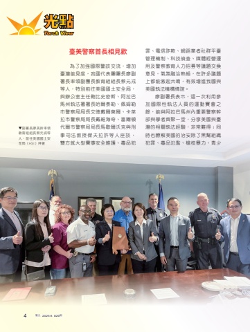 %u81fa%u7f8e%u8b66%u5bdf%u9996%u9577%u76f8%u898b%u6b61%u70ba%u4e86%u52a0%u5f37%u570b%u969b%u8b66%u653f%u4ea4%u6d41%uff0c%u589e%u52a0%u81fa%u7063%u80fd%u898b%u5ea6%uff0c%u6211%u570b%u4ee3%u8868%u5718%u5718%u9577%u5ed6%u526f%u7f72%u9577%u7387%u9818%u526f%u5718%u9577%u6559%u80b2%u7d44%u7d44%u9577%u8521%u5143%u620e%u7b49%u4eba%uff0c%u7279%u5225%u524d%u5f80%u7f8e%u570b%u570b%u571f%u5b89%u5168%u5c40%uff0c%u8207%u8fa6%u516c%u5ba4%u4e3b%u4efb%u9b91%u6bd4%u53f2%u5bc6%u65af%u3001%u963f%u62c9%u5df4%u99ac%u5dde%u57f7%u6cd5%u7f72%u7f72%u9577%u54c8%u723e%u6cf0%u52d2%u3001%u4f69%u59c6%u52d2%u5e02%u8b66%u5bdf%u5c40%u5c40%u9577%u827e%u5fb7%u6234%u723e%u83ab%u723e%u3001%u5361%u840a%u62c9%u5e02%u8b66%u5bdf%u5c40%u5c40%u9577%u6234%u7dad%u6d77%u5947%u3001%u5bcc%u723e%u9813%u4ee3%u723e%u5e02%u8b66%u5bdf%u5c40%u5c40%u9577%u99ac%u6b47%u723e%u6c83%u514b%u8207%u5211%u4e8b%u53f8%u6cd5%u6559%u6388%u5091%u592b%u62c9%u8a31%u7b49%u4eba%u5ea7%u8ac7%uff0c%u96d9%u65b9%u5c31%u5927%u578b%u8cfd%u4e8b%u5b89%u5168%u7dad%u8b77%u3001%u6bd2%u54c1%u72af%u7f6a%u3001%u96fb%u4fe1%u8a50%u6b3a%u3001%u7db2%u8def%u696d%u8005%u793e%u7fa4%u5e73%u81fa%u7ba1%u7406%u6a5f%u5236%u3001%u79d1%u6280%u5075%u67e5%u3001%u5a92%u9ad4%u7d93%u71df%u904b%u7528%u53ca%u8b66%u5bdf%u6559%u80b2%u4eba%u529b%u62db%u52df%u7b49%u8b70%u984c%u4ea4%u63db%u610f%u898b%uff0c%u6c23%u6c1b%u878d%u6d3d%u71b1%u7d61%uff0c%u5728%u8a31%u591a%u8b70%u984c%u4e0a%u90fd%u80fd%u6fc0%u8d77%u5171%u9cf4%uff0c%u6709%u6548%u589e%u9032%u6211%u570b%u8207%u7f8e%u570b%u57f7%u6cd5%u6a5f%u69cb%u60c5%u8abc%u3002%u5ed6%u526f%u7f72%u9577%u8868%u793a%uff0c%u9019%u4e00%u6b21%u5229%u7528%u53c3%u52a0%u570b%u969b%u6027%u57f7%u6cd5%u4eba%u54e1%u7684%u904b%u52d5%u8cfd%u6703%u4e4b%u9918%uff0c%u80fd%u8207%u963f%u62c9%u5df4%u99ac%u5dde%u5167%u91cd%u8981%u8b66%u5bdf%u5e79%u90e8%u8207%u5b78%u8005%u9f4a%u805a%u4e00%u5802%uff0c%u5206%u4eab%u7f8e%u570b%u8207%u81fa%u7063%u7684%u76f8%u95dc%u57f7%u6cd5%u7d93%u9a57%uff0c%u975e%u5e38%u96e3%u5f97%uff1b%u540c%u6642%u4e5f%u77ad%u89e3%u7f8e%u570b%u7684%u6cbb%u5b89%u9664%u4e86%u9ed1%u5e6b%u7d44%u7e54%u72af%u7f6a%u3001%u6bd2%u54c1%u6c3e%u6feb%u3001%u69cd%u679d%u66b4%u529b%u3001%u9752%u5c11%u25bc%u526f%u7f72%u9577%u5ed6%u7f8e%u9234%u7387%u9818%u6559%u80b2%u7d44%u7d44%u9577%u8521%u5143%u620e%u7b49%u4eba%uff0c%u524d%u5f80%u7f8e%u570b%u570b%u571f%u5b89%u5168%u5c40%uff08HSI%uff09%u62dc%u67034 %u8b66%u5149%u30002025.8%u3000829%u671f