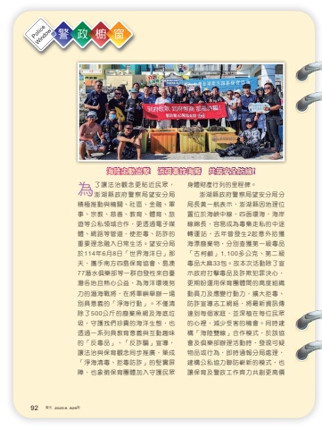 %u70ba%u4e86%u8b93%u6cd5%u6cbb%u89c0%u5ff5%u66f4%u8cbc%u8fd1%u6c11%u773e%uff0c%u6f8e%u6e56%u7e23%u653f%u5e9c%u8b66%u5bdf%u5c40%u671b%u5b89%u5206%u5c40%u7a4d%u6975%u63a8%u52d5%u8207%u6a5f%u95dc%u3001%u793e%u5340%u3001%u91d1%u878d%u3001%u8ecd%u4e8b%u3001%u5b97%u6559%u3001%u6148%u5584%u3001%u6559%u80b2%u3001%u9ad4%u80b2%u3001%u65c5%u904a%u7b49%u516c%u79c1%u9818%u57df%u5408%u4f5c%uff0c%u66f4%u900f%u904e%u96fb%u5b50%u5a92%u9ad4%u3001%u7db2%u8def%u7b49%u7ba1%u9053%uff0c%u4f7f%u62d2%u6bd2%u3001%u9632%u8a50%u7684%u91cd%u8981%u7406%u5ff5%u878d%u5165%u65e5%u5e38%u751f%u6d3b%u3002%u671b%u5b89%u5206%u5c40%u65bc114%u5e746%u67088%u65e5%u300c%u4e16%u754c%u6d77%u6d0b%u65e5%u300d%u90a3%u5929%uff0c%u651c%u624b%u5357%u65b9%u56db%u5cf6%u4fdd%u80b2%u5354%u6703%u3001%u5cf6%u6fb377%u6f5b%u6c34%u4ff1%u6a02%u90e8%u7b49%u4e00%u7fa4%u81ea%u767c%u6027%u4f86%u81ea%u81fa%u7063%u5404%u5730%u4e14%u71b1%u5fc3%u516c%u76ca%uff0c%u70ba%u6d77%u6d0b%u74b0%u5883%u52aa%u529b%u7684%u6f5b%u6d77%u6230%u5c07%uff0c%u5728%u5c07%u8ecd%u5dbc%u8209%u8fa6%u4e00%u5834%u5225%u5177%u610f%u7fa9%u7684%u300c%u6de8%u6d77%u884c%u52d5%u300d%u3002%u4e0d%u50c5%u6e05%u9664%u4e86500%u516c%u65a4%u7684%u5ee2%u68c4%u9b5a%u7db2%u53ca%u6d77%u5e95%u5783%u573e%uff0c%u5b88%u8b77%u6211%u5011%u73cd%u8cb4%u7684%u6d77%u6d0b%u751f%u614b%uff0c%u4e5f%u900f%u904e%u4e00%u7cfb%u5217%u5177%u6559%u80b2%u610f%u7fa9%u8207%u4e92%u52d5%u8da3%u5473%u7684%u300c%u53cd%u6bd2%u54c1%u300d%u3001%u300c%u53cd%u8a50%u9a19%u300d%u5ba3%u5c0e%uff0c%u8b93%u6cd5%u6cbb%u8207%u4fdd%u80b2%u89c0%u5ff5%u540c%u6b65%u63a8%u5ee3%uff0c%u7bc9%u6210%u300c%u6de8%u6d77%u6e05%u6bd2%u3001%u62d2%u6bd2%u9632%u8a50%u300d%u7684%u5805%u5be6%u5c4f%u969c%uff0c%u4e5f%u8c61%u5fb5%u4fdd%u80b2%u5718%u9ad4%u52a0%u5165%u5b88%u8b77%u6c11%u773e%u8eab%u9ad4%u8ca1%u7522%u884c%u5217%u7684%u91cc%u7a0b%u7891%u3002%u6f8e%u6e56%u7e23%u653f%u5e9c%u8b66%u5bdf%u5c40%u671b%u5b89%u5206%u5c40%u5206%u5c40%u9577%u9ec3%u4e00%u822a%u8868%u793a%uff0c%u6f8e%u6e56%u7e23%u56e0%u5730%u7406%u4f4d%u7f6e%u4f4d%u65bc%u6d77%u5cfd%u4e2d%u7dda%uff0c%u56db%u9762%u74b0%u6d77%uff0c%u6d77%u5cb8%u7dda%u7dbf%u9577%uff0c%u5bb9%u6613%u6210%u70ba%u6bd2%u689f%u8d70%u79c1%u7684%u4e2d%u9014%u8f49%u904b%u7ad9%uff0c%u53bb%u5e74%u66fe%u767c%u751f2%u8d77%u610f%u5916%u62fe%u7372%u6d77%u6f02%u5ee2%u68c4%u7269%uff0c%u5206%u5225%u67e5%u7372%u7b2c%u4e00%u7d1a%u6bd2%u54c1%u300c%u53e4%u67ef%u9e7c%u300d1,100%u591a%u516c%u514b%u3001%u7b2c%u4e8c%u7d1a%u6bd2%u54c1%u5927%u9ebb33%u5305%u3002%u6545%u672c%u6b21%u6d3b%u52d5%u9664%u4e86%u5ba3%u793a%u653f%u5e9c%u6253%u64ca%u6bd2%u54c1%u53ca%u8a50%u6b3a%u72af%u7f6a%u6c7a%u5fc3%uff0c%u66f4%u671f%u76fc%u904b%u7528%u4fdd%u80b2%u5718%u9ad4%u9593%u7684%u9ad8%u5ea6%u7d44%u7e54%u52d5%u54e1%u529b%u53ca%u61c9%u8b8a%u884c%u52d5%u529b%uff0c%u64f4%u5927%u62d2%u6bd2%u3001%u9632%u8a50%u5ba3%u5c0e%u5fd7%u5de5%u7db2%u7d61%uff0c%u5c07%u6700%u65b0%u8cc7%u8a0a%u50b3%u9054%u5230%u6bcf%u500b%u5bb6%u5ead%uff0c%u4e26%u6df1%u690d%u5728%u6bcf%u4f4d%u6c11%u773e%u7684%u5fc3%u88e1%uff0c%u6e1b%u5c11%u53d7%u5bb3%u7684%u6a5f%u6703%u3002%u540c%u6642%u5efa%u69cb%u300c%u6d77%u9678%u96d9%u7dda%u300d%u5408%u4f5c%u6a21%u5f0f%uff0c%u65bc%u8a72%u5354%u6703%u53ca%u4ff1%u6a02%u90e8%u8fa6%u7406%u6d3b%u52d5%u6642%uff0c%u767c%u73fe%u53ef%u7591%u7269%u54c1%u6216%u884c%u70ba%uff0c%u5373%u6642%u901a%u5831%u5206%u5c40%u8655%u7406%uff0c%u5efa%u69cb%u516c%u79c1%u5354%u529b%u806f%u9632%u5d84%u65b0%u7684%u6a21%u5f0f%uff0c%u4e5f%u8b93%u4fdd%u80b2%u53ca%u8b66%u653f%u5de5%u4f5c%u9f4a%u529b%u5171%u5275%u66f4%u9ad8%u50f9%u6d77%u9678%u4e3b%u52d5%u51fa%u64ca%u3000%u6d88%u5f2d%u6bd2%u8a50%u6d77%u5ee2%u3000%u5171%u7bc9%u5b89%u5168%u9632%u7dda%uff0192 %u8b66%u5149 2025.8 829%u671f